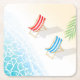 Modern Deckchairs at Seaside Art Square Paper Coaster