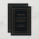 These glamorous wedding guest information cards feature a modern spin on classic art deco. An ornate, faux gold look geometric frame and ornamentation decorate an elegant dark onyx black background for a dramatic, vintage wedding look. You can use these cards for driving directions, reception or transportation information, hotel or accommodations information, and any other wedding details you need your guests to know.