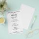 This glamorous wedding menu features a modern spin on classic art deco. Ornate, black geometric borders and ornamentation decorate an elegant white background for a dramatic, vintage 1920's dinner menu look.
