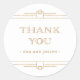 These glamorous wedding stickers feature a modern spin on classic art deco. Ornate, faux gold look geometric borders and ornamentation decorate an elegant white background for a dramatic, vintage wedding look. Classic faux gold typography says "thank you", making these perfect to add to your wedding favors.