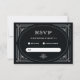 These glamorous wedding rsvp response cards feature a modern spin on classic art deco. An ornate, white geometric frame and ornamentation decorate an elegant dark onyx black background for a dramatic, vintage wedding look.