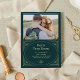 These glamorous wedding save the date cards feature a modern spin on classic art deco. An ornate, faux champagne gold look geometric frame and ornamentation decorate an elegant emerald green background with your favorite personal photo for a dramatic, vintage wedding look.