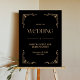 This welcome wedding poster combines a modern deco vibe with a bold gold and black palette, creating an entrance piece that instantly sets the tone for a stylish celebration. Its clean lines, geometric accents, and polished layout make it a standout detail for couples who want their décor to feel elegant, contemporary, and cohesive from the moment guests arrive. The design photographs beautifully, works well with black-tie, glam, luxe, and modern-themed weddings, and adds a sense of sophistication without overwhelming the space. Perfect for venue entrances, photo spots, or reception areas, this poster helps guests feel welcomed while tying your entire wedding aesthetic together in a striking and memorable way.