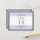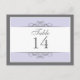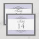 Traditional yet contemporary is the focus of this lovely table card. Soft purple bordered with white and charcoal gray make up the base. The white panel contains the table information. Double-sided design for convenience from any angle. Available in alternate colors with matching products.