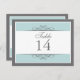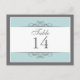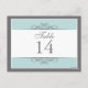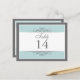 Traditional yet contemporary is the focus of this lovely table card. Soft blue bordered with white and charcoal gray make up the base. The white panel contains the table information. Double-sided design for convenience from any angle. Available in alternate colors with matching products.