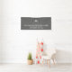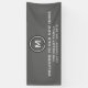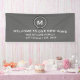 Modern decorative housewarming party banner features a simple design with a stylized elegant monogram medallion in gray and silver with white modern typography. "Welcome to Our New Home" message is presented in coordinating modern typography, along with customizable text for family name, address and established date. Personalize with custom monogram initial, family name, address and established date, or or use the "contact this designer" button for help. A perfect way to welcome guests to your new home and your modern stylish housewarming party.
