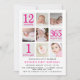 Modern Deep Pink Photo Collage First Birthday Invitation