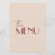 A colorful retro funky modern bright wedding dinner menu. Which features chic template design of boho vintage creamy background and deep red typography and hand written menu. Perfect and matching with the whole suite.