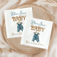 Celebrate the arrival of a little cowboy with this Blue Jean Baby Shower Napkins! This charming design features a watercolor denim baby bodysuit hanging on a hanger, perfect for a rustic or western-themed baby shower. The classic blue jean aesthetic adds a trendy and gender-neutral touch, making it ideal for celebrating a baby boy. Customize the details effortlessly to create the perfect theme for your special event.