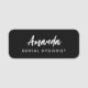 Create a warm yet professional impression with this stylish dental hygienist name tag, featuring a modern black background and a beautiful script name design.