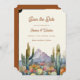 Modern Desert Cactus Photo Save the Date - Announce your love story with a touch of desert elegance and rustic charm! This enchanting "Save the Date" invitation captures the essence of romance against a breathtaking desert canvas. Imagine a sweeping desert landscape, where resilient cacti stand tall amidst a symphony of rugged mountains and delicate cactus blooms. The scene is bathed in the warm glow of sunlight, creating an ambiance that is both serene and stunning.