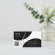 Elevate your 🧹✨ house cleaning business with our unique and modern business card design. The front features two irregular partial round shapes, breaking the white background with a touch of creativity. The QR code in the bottom left corner unveils a white, black-outlined broom silhouette, symbolizing your cleaning expertise.
