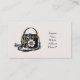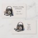 Picture a modern, chic business card tailored for various handbag, purse, or accessory businesses. Envision a store display shelf carrying a line of fashion handbags, this one is a black bucket bag style featuring a pair of sunglasses and a soft lipstick accent. This card can be personalized with all your business details. Additional customization on the back of the card.