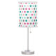 Decorate and light any room with this decorator color polka dot pattern table lamp decorated in beautiful shades of pink, green, and grey. Designed to double as a decorative accessory and add some character and style.