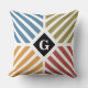 Freshen up your indoor or outdoor living spaces with this customizable throw pillow that features a modern diagonal stripe design in muted shades of blue, green, orange, and red. Modify the initial to create a one-of-a-kind accent pillow that will complement a variety of decor styles. Perfect for indoor use in a living room or bedroom or for outdoor use on a porch or patio. Makes a great housewarming gift for new homeowners.