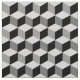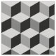 Mid-Century Modern geometric grid of diamond shapes arranged as 3-d boxes - shades of gray / grey, from light silver to graphite, and black fabric