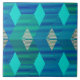 Modern Diamond Warp Print, Turquoise and Blue Ceramic Tile