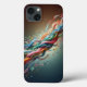 Elevate your phone's look with this high-energy abstract ribbon design. Featuring a stunning intertwining of colorful silk-like bands in shades of teal, crimson, and gold, accented with floating digital particles. This sophisticated digital artwork represents fluid connectivity and modern creativity, making it a perfect statement piece for your daily tech.
