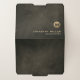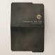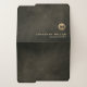 Modern monogram design with stylish brushed metallic gold monogram medallion with personalized name and title below on a stylish distressed leather texture background in shades of black chestnut brown. Personalize for your custom use.