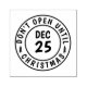 Stylish and fun, this rubber stamp is the perfect accessory to your holiday gift-giving needs. The design features a round stamp with the text "Don't Open Until Christmas" and the date "Dec 25." Great for packages, letters, and any other gifts you need to seal for the Christmas season. Merry Christmas and Happy Holidays.