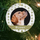 Modern Dog Pet Photo Floral Pattern Christmas Ceramic Ornament. Cute and modern design with green simple flower pattern. Add your photo and name and make a sweet keepsake for a dog owner.