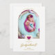 The central element of this proposal is the dome-shaped arch, which contains a picture of the adorable baby extending this special invitation. This customized image adds a touching and personal touch to the card, making the proposal even more meaningful.