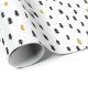 Modern stylish minimalist white wrapping paper featuring an original doodle illustration pattern of cute simple black pine trees with few of them gold. Please note that the gold here is a flat yellow beige color print and is not an actual gold color or foil.