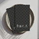 Modern customizable business card template with white scissors icon and black/grey dotted background. Elegant and modern design. Perfect for beauty salon, hair stylist, hairdresser.