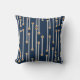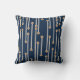 This modern throw pillow features a pattern of random dotted lines in cream and rust on navy blue for a contemporary look.