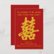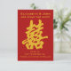 This Modern Double Happiness Save the Date Card consists of the character "double happiness" in Chinese in gold glitter, and customizable names, date and location.