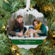 Personalize your holiday tree or home décor with a beautiful modern family themed ornament card, featuring your family name and the year with your family photo on the front and back. This custom, unique design features an elegant calligraphy style font type in white over a forest green strip complimenting your families name and photo. The perfect housewarming addition to your holiday décor.