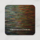 This square business card features a modern black abstract design with multicolored stripes. All information can be personalized to meet your needs.