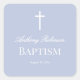 Celebrate this joyous occasion with our personalized sticker that will set the tone for a memorable and meaningful gathering. Simple and modern baptism label featuring a dusty, blue-colored background and a white cross design.