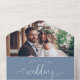 Modern Dusty Blue Elegant Script 2 Photo Wedding All In One Invitation