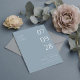 The matter paper is our sample of choice -- it's a reasonably priced, good quality, nice feeling paper stock. We were a little concerned the muted rustic blues might not reproduce all that well (usually by light colored samples), but they're just gorgeous! The white lettering is perfect in combination with the blue background, and the typography is all easy to read.