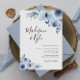 modern dusty blue floral wedding invitation