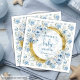 Celebrate your baby boy in style with this charming collection of boy baby shower napkins featuring dusty blue and pastel blue flowers accented with elegant gold. Perfect for adding a coordinated, festive touch to your tables, dessert stations, or snack areas.