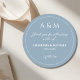 Modern dusty blue minimalist wedding classic round sticker