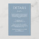 Create a chic and timeless wedding with this modern, minimalist details enclosure card in dusty blue color. Its clean design, elegant typography, and elegant color theme make it perfect for couples who want a simple, minimal and stylish look. Simple yet refined, this invitation sets the tone for a memorable, classy wedding. Perfect for sharing important wedding details while keeping a modern, stylish, and classic look.