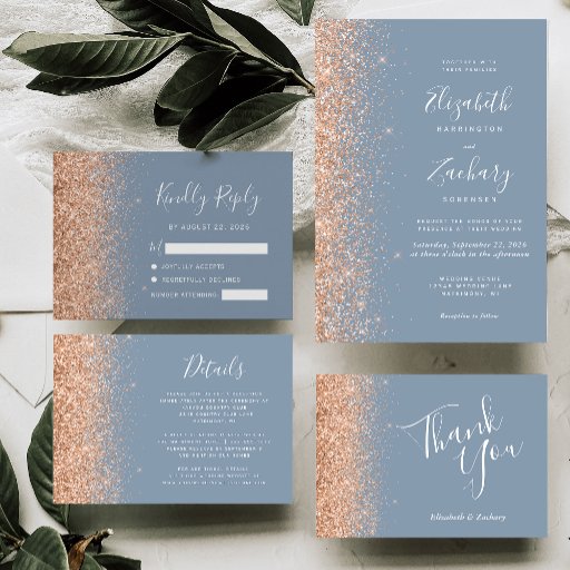 Modern Peach Glitter Dusty Blue Wedding SuiteDesigned by Akhates Designs