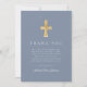 Modern Dusty Blue Religious Boy First Communion Thank You Card