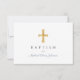 Personalized Modern Dusty Blue Script Cross Boy Baptism RSVP Card