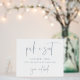 Modern script, "pick a seat" wedding foam board sign. Dusty slate blue typography.