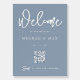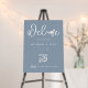 Elegant Dusty Blue Script Wedding QR Code Welcome Sign