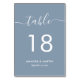 Minimalist, yet elegant dusty blue wedding table number card featuring a modern script font. Matching items available.