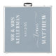 This custom wedding beer pong table features a dusty blue background with crisp white fonts, adding a cool and stylish touch to your wedding celebration. It proudly displays "Mr. & Mrs. [Last Name]" along with the bride and groom's names, so guests can join "Team [Bride's Name]" or "Team [Groom's Name]" for a fun and personalized game. The wedding date is also included, making it a great keepsake from your special day.
