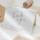 This elegant modern wedding thank you card features stylish handwriting script in dusty lavender purple on a white background. Add the couple's names and wedding date in sans serif font.