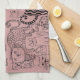 A fun modern hand-drawn dusty rose and black kitty cat decorative pattern kitchen towel by Julie Nicholls©.