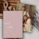 Design features a simple yet sophisticated white lettering script against a dusty rose green background that sets the tone and pairs well with any modern wedding theme venue. Easily customize with your important details as well as your awesome photo of choice.