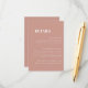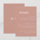 An elegant and modern dusty rose wedding details card, designed with white typography, and some arched lettering. Personalize with all your future wedding details, and initials at the back.